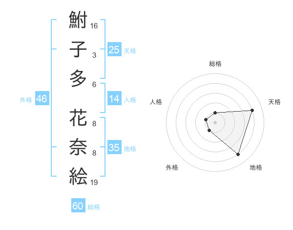 鮒子多 花奈絵さんの外格は46画の1点!