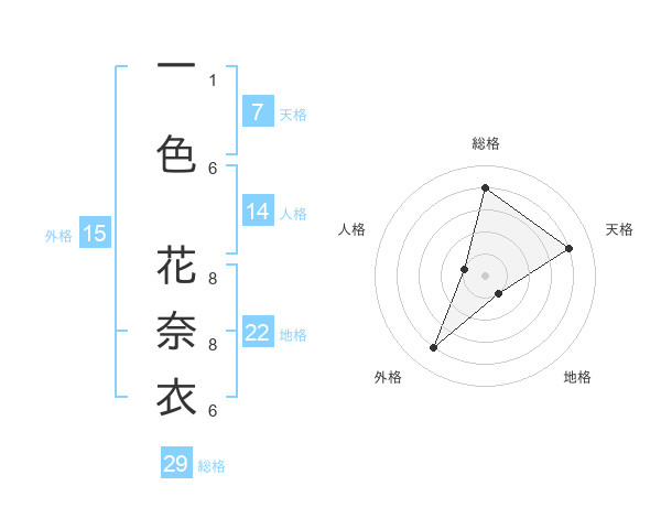 一色 花奈衣さんの地格は22画の1点!