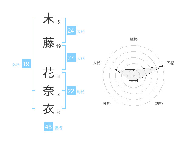 末藤 花奈衣さんの天格は24画の5点!