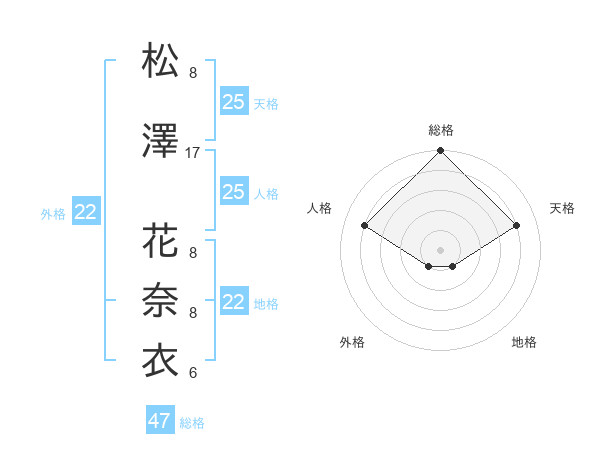 松澤 花奈衣さんの総格は47画の5点!
