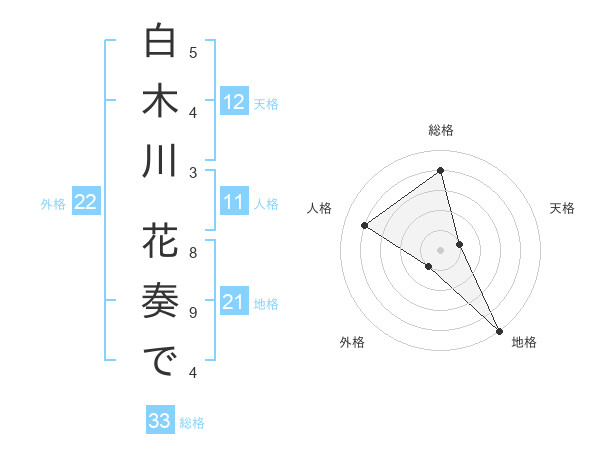 白木川 花奏でさんを姓名の画数から五運を鑑定