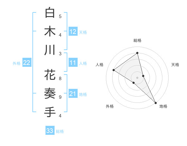 白木川 花奏手さんを姓名の画数から五運を鑑定