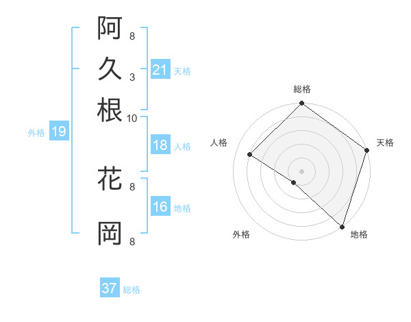阿久根 花岡さんの総格は37画の5点!