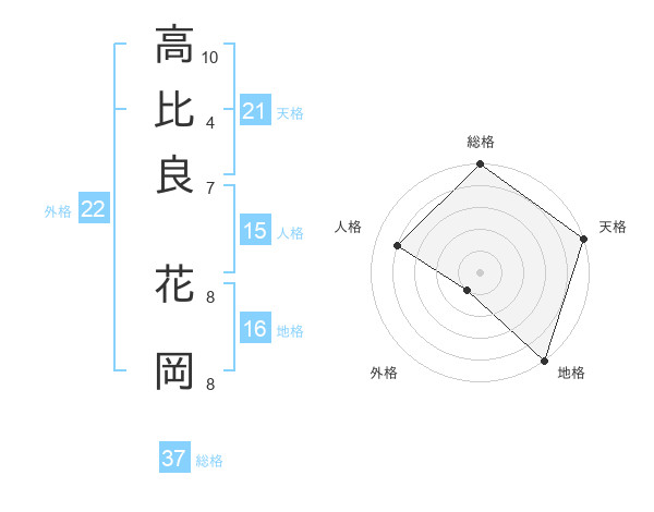 高比良 花岡さんの総格は37画の5点!