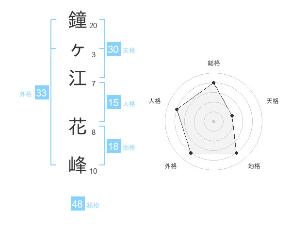 鐘ヶ江 花峰さんの総格は48画の4点!
