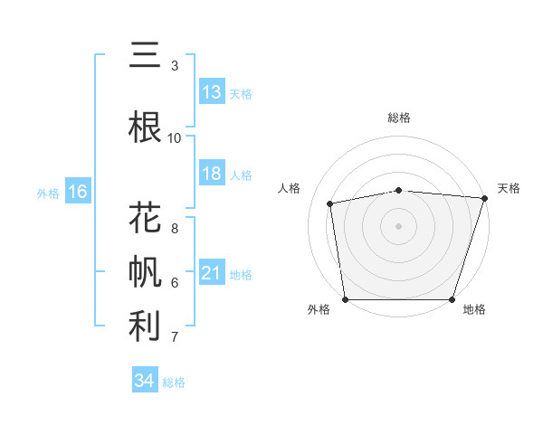 三根 花帆利さんを姓名の画数から五運を鑑定