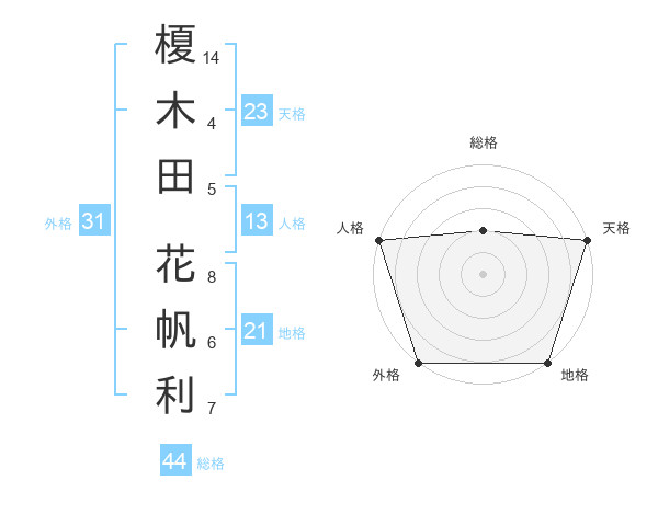 榎木田 花帆利さんの天格は23画の5点!