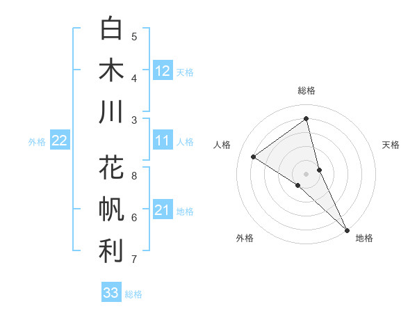 白木川 花帆利さんを姓名の画数から五運を鑑定