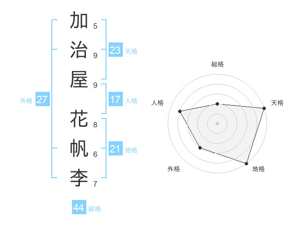 加治屋 花帆李さんの天格は23画の5点