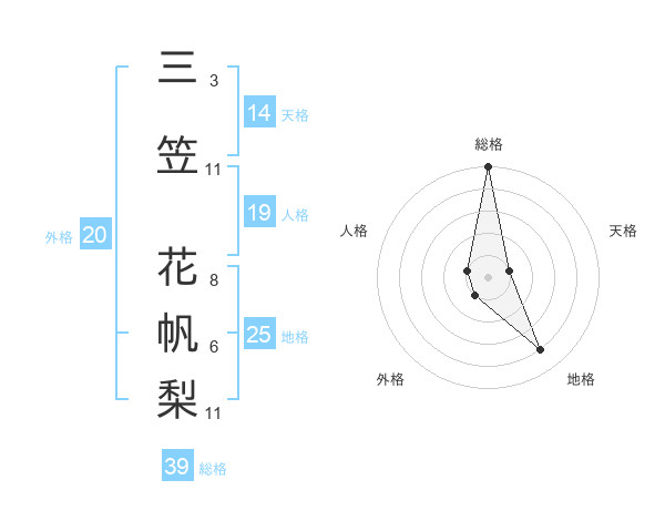 三笠 花帆梨さんを姓名の画数から五運を鑑定