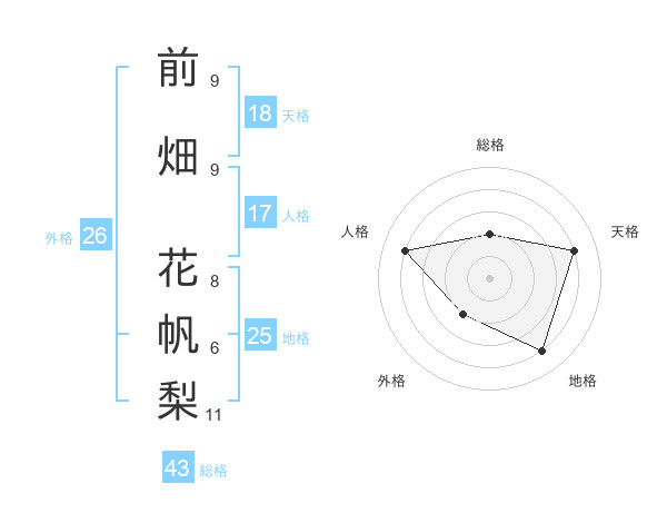 前畑 花帆梨さんの総格は43画の2点!