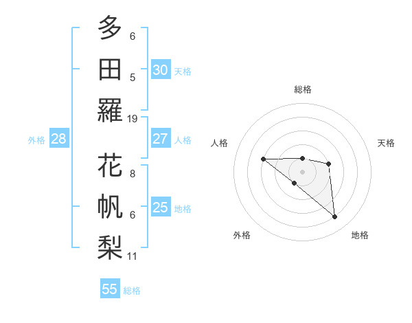 多田羅 花帆梨さんを姓名の画数から五運を鑑定
