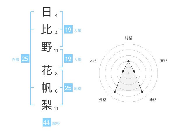 日比野 花帆梨さんの総格は44画の2点!