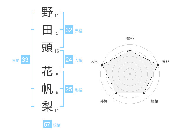 野田頭 花帆梨さんを姓名の画数から五運を鑑定
