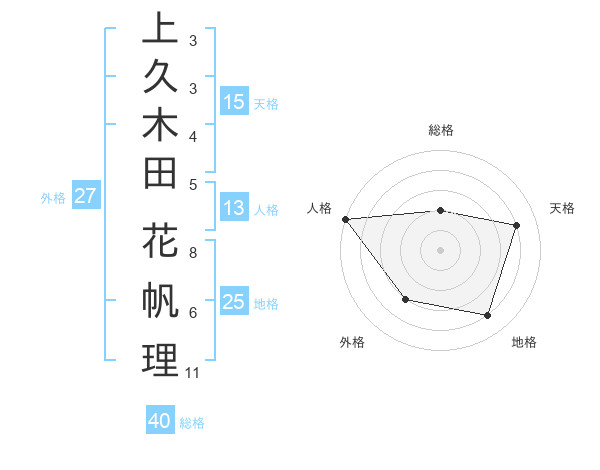 上久木田 花帆理さんを姓名の画数から五運を鑑定