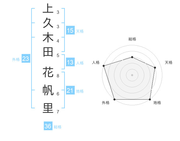 上久木田 花帆里さんを姓名の画数から五運を鑑定