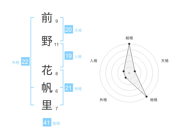 前野 花帆里さんを姓名の画数から五運を鑑定