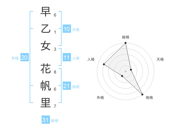 早乙女 花帆里さんを姓名の画数から五運を鑑定