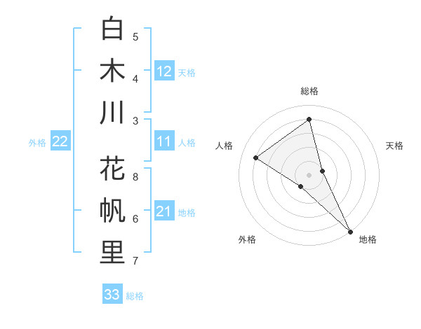 白木川 花帆里さんの総格は33画の4点!