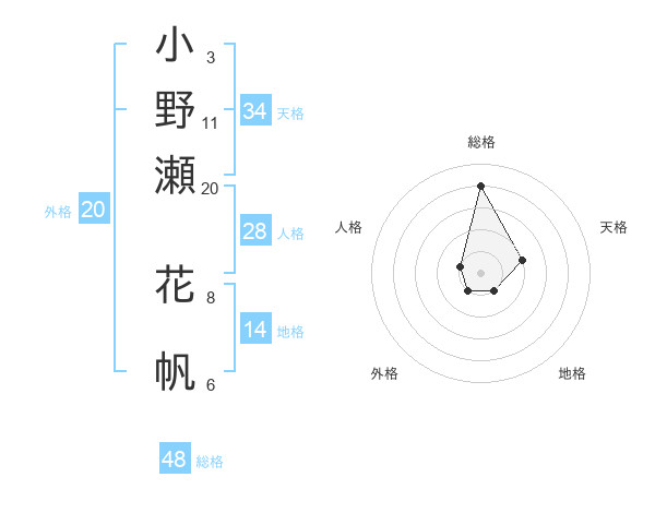 小野瀬 花帆さんを姓名の画数から五運を鑑定