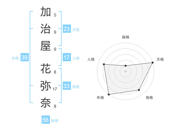 加治屋 花弥奈さんの外格は39画の5点