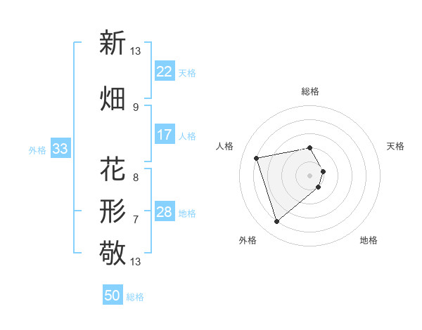 新畑 花形敬さんを姓名の画数から五運を鑑定