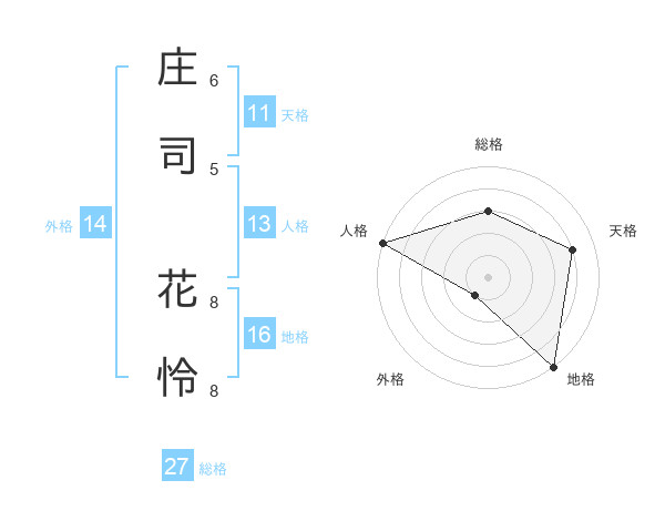 庄司 花怜さんの天格は11画の4点!