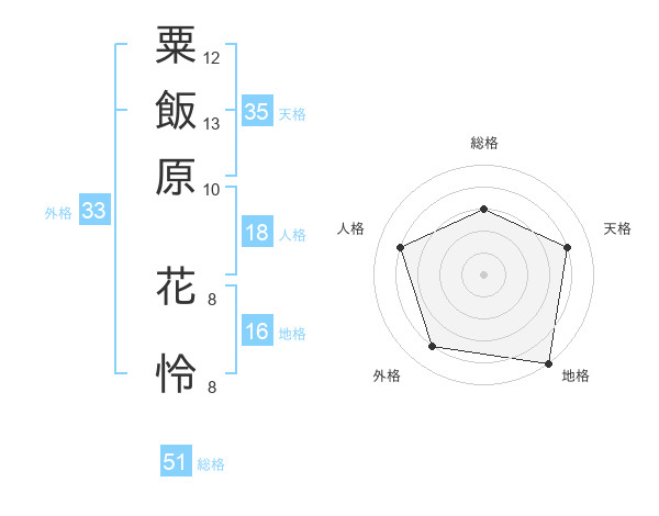粟飯原 花怜さんの総格は51画の3点!