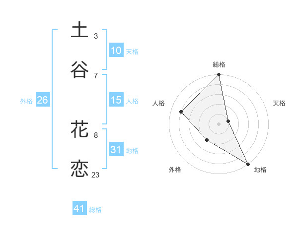 土谷 花恋さんを姓名の画数から五運を鑑定