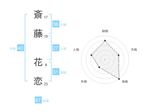 斎藤 花恋さんの総格は67画の4点!