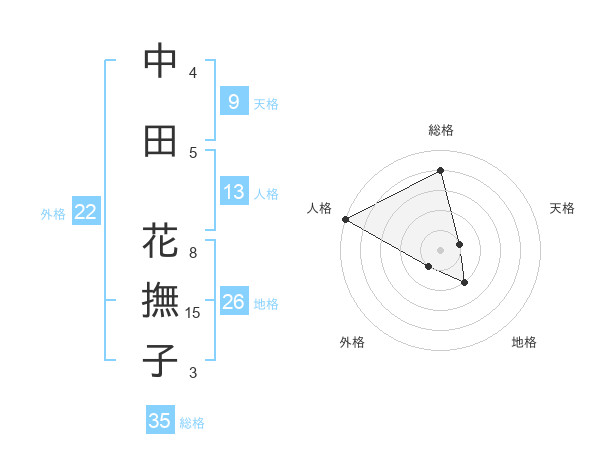 中田 花撫子さんの総格は35画の4点!