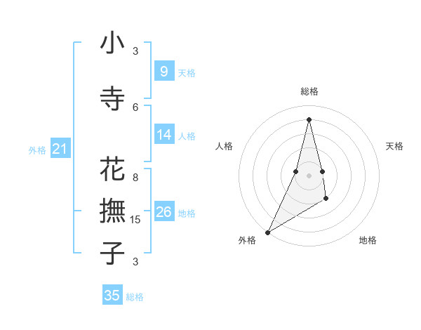 小寺 花撫子さんを姓名の画数から五運を鑑定