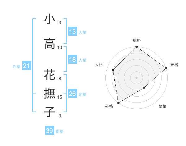 小高 花撫子さんの総格は39画の5点!