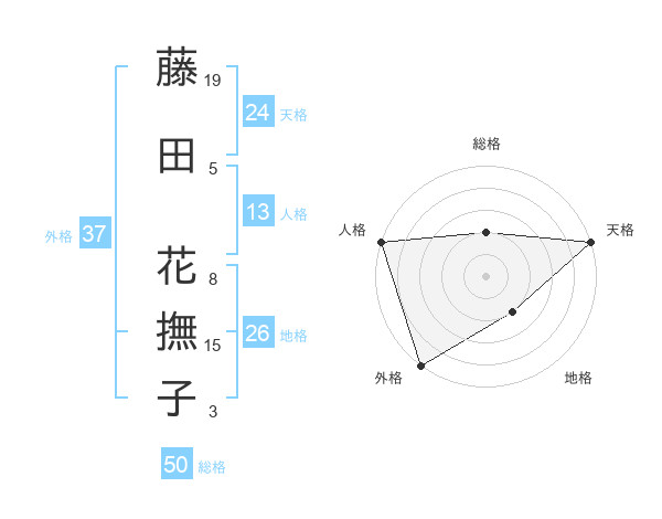 藤田 花撫子さんの外格は37画の5点