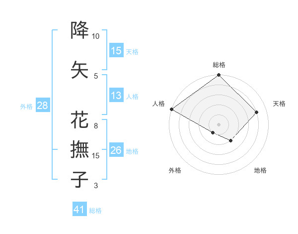 降矢 花撫子さんを姓名の画数から五運を鑑定