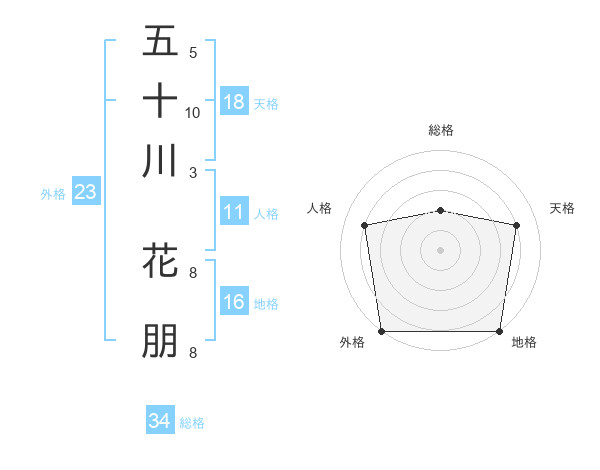 五十川 花朋さんを姓名の画数から五運を鑑定