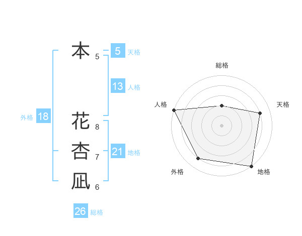 本 花杏凪さんを姓名の画数から五運を鑑定