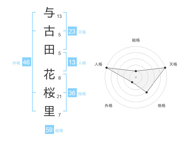 与古田 花桜里さんを姓名の画数から五運を鑑定