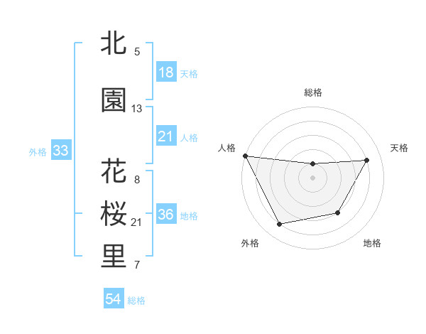 北園 花桜里さんを姓名の画数から五運を鑑定