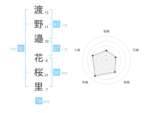 渡野邉 花桜里さんを姓名の画数から五運を鑑定