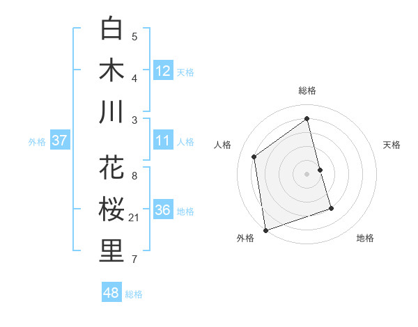 白木川 花桜里さんを姓名の画数から五運を鑑定