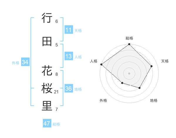 行田 花桜里さんを姓名の画数から五運を鑑定