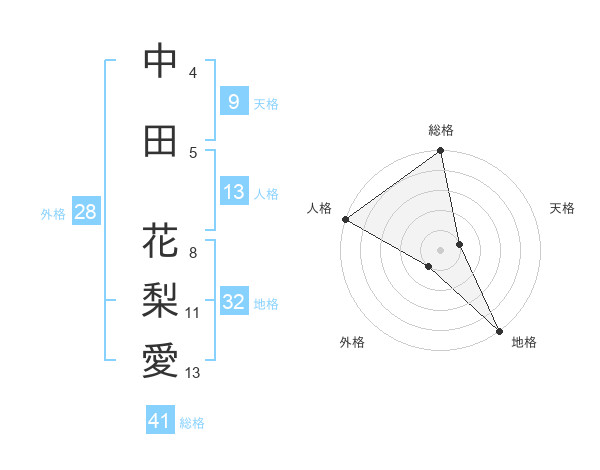 中田 花梨愛さんの総格は41画の5点