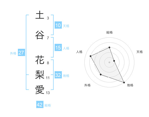 土谷 花梨愛さんを姓名の画数から五運を鑑定
