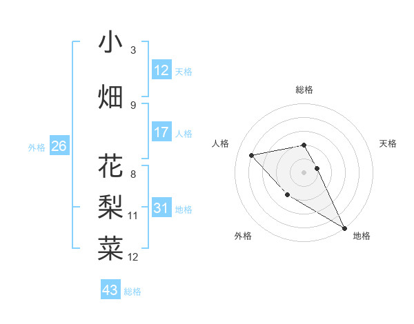 小畑 花梨菜さんを姓名の画数から五運を鑑定