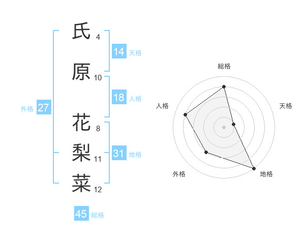 氏原 花梨菜さんを姓名の画数から五運を鑑定