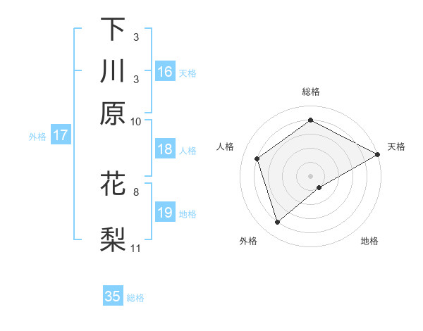 下川原 花梨さんを姓名の画数から五運を鑑定