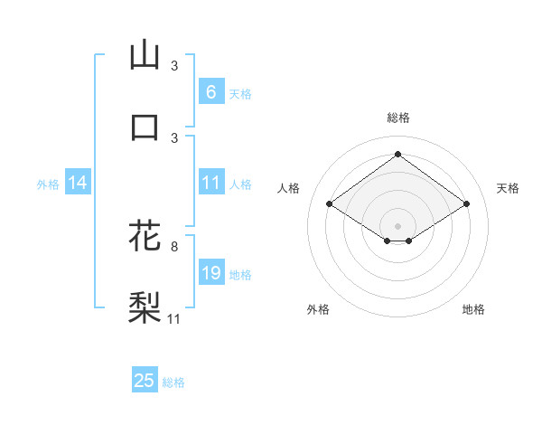 山口 花梨さんの総格は25画の4点!