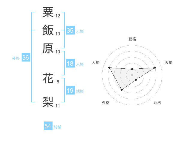 粟飯原 花梨さんを姓名の画数から五運を鑑定
