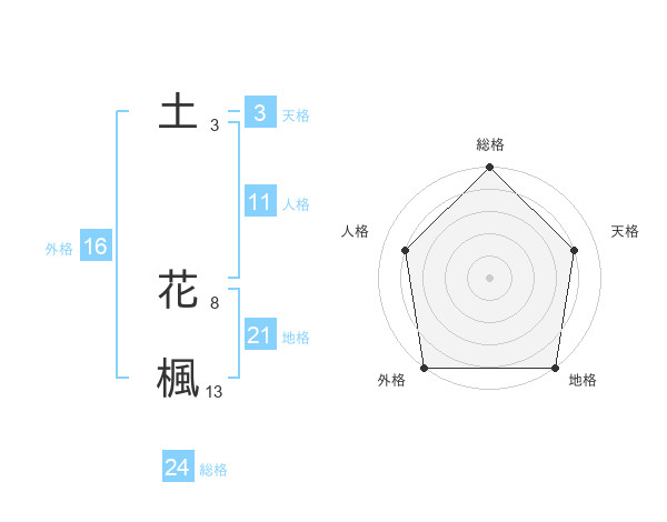 土 花楓さんの地格は21画の5点!